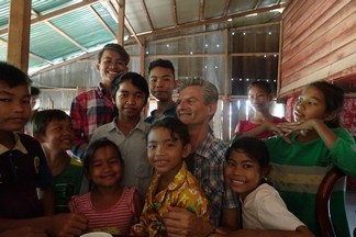 Het Kinderhuis wordt geleid door mevrouw Sopheap. Zij waakt als een moeder over de kinderen en zorgt dat het Kinderhuis en de compound in goede banen blijven. Theodoor Bolten is regelmatig in Siem Reap. Als voorzitter van de Stichting Kinderhuis Cambodja regelt hij de zaken met mevrouw Sopheap en geeft Engelse les. Het overige bestuur (nog twee leden) zetelt in Nederland. Iedere dag geeft Theodoor elementair Engels aan de kinderen van klein tot groot. Daar is hij heel de dag druk mee. Eerst krijgen de kleintjes een uurtje les daarna de oudere kinderen om vervolgens de ochtend te eindigen met een les aan de oudsten. Het kan ook andersom, het lesrooster was mij niet helemaal duidelijk maar iedere keer stonden er na een uur weer kinderen voor de deur die les wilden. Tot lunchtijd. Toen stond in het hoofdhuis een smakelijke schotel rijst met groenten en gebakken ei of iets anders klaar. Twee ochtenden was ik aanwezig in de school. Blootsvoets omdat ik was weggezakt in de modder die door de hevige regenval het terrein tot een blubberpoel had omgevormd wilde ik de school binnenstappen. In de zon droogt het snel dacht ik. Maar met moddervoeten mocht ik niet naar binnen van de kinderen. Mijn voeten werden zorgvuldig gewassen, mijn sandalen uit het slib getrokken, achter mij aan gedragen en vervolgens keurig voor de deur van de school neergezet. Tijdens de lessen werden Theodoor en ik regelmatig voorzien van een flesje koud water. Dat was heel aangenaam want hoewel het schooltje is voorzien van ventilatoren, die door de oudere kinderen in werkende staat worden gehouden het is en blijft bloedjeheet. . .